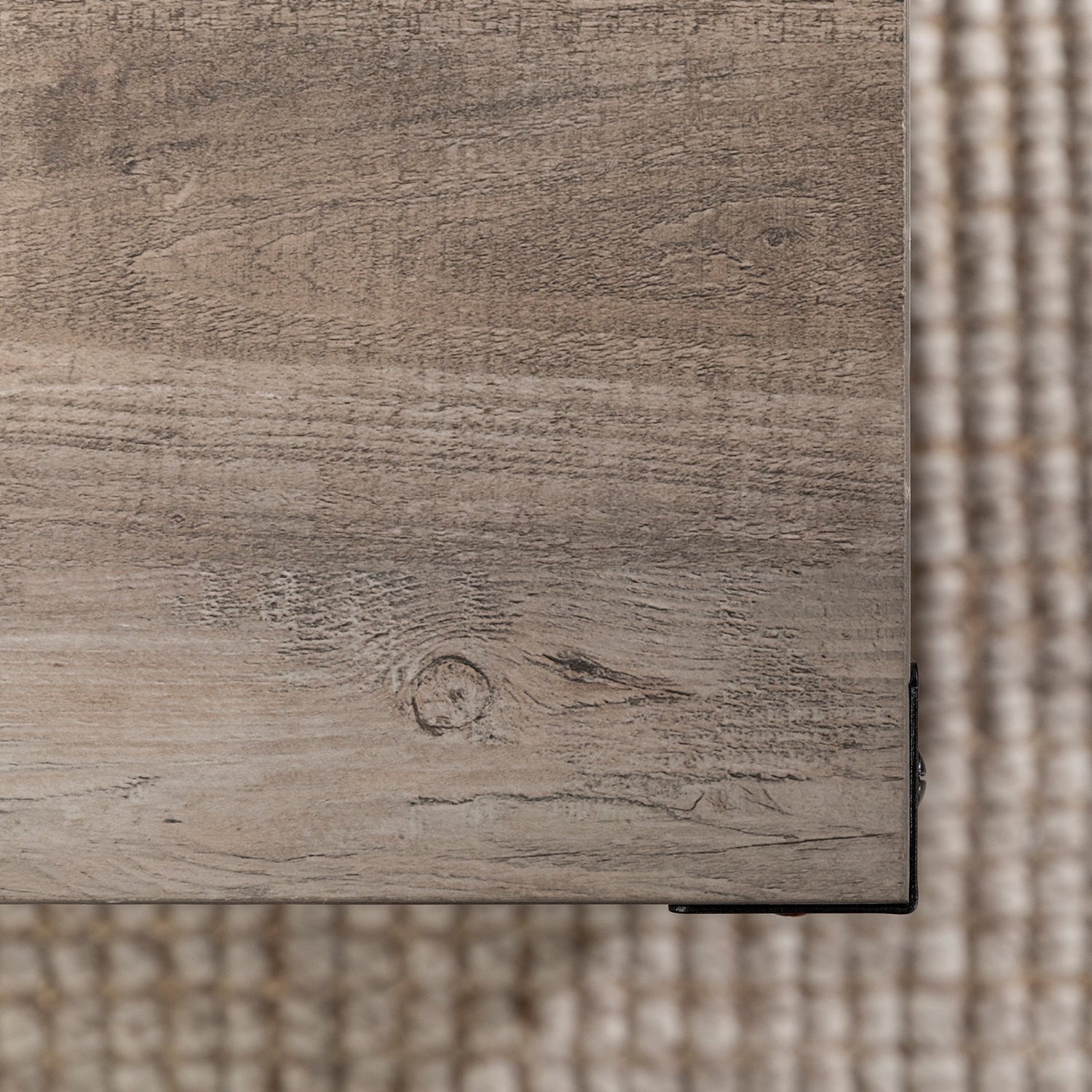 Give your living room some rustic style with our industrial inspired coffee table. Black painted metal accents are featured on the top corners and x-shaped sides, which contrast beautifully with the wood textured surface made from durable laminate. Our coffee table provides just enough space for placing down items from your TV remote to your mail, while also having a shelf underneath for simple storage or décor.