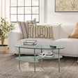 This stylish coffee table offers multiple levels to showcase your magazines and books and provides a durable foundation for your morning coffee in your living room. Its distinct metal tapered legs support the three tempered safety glass shelves. The layered glass shelves give a subtle sleek and elegant appeal to your living space, while also having a Mid-century modern design. Features two frosted lower shelves, each having beveled edges for a soft, smooth look.