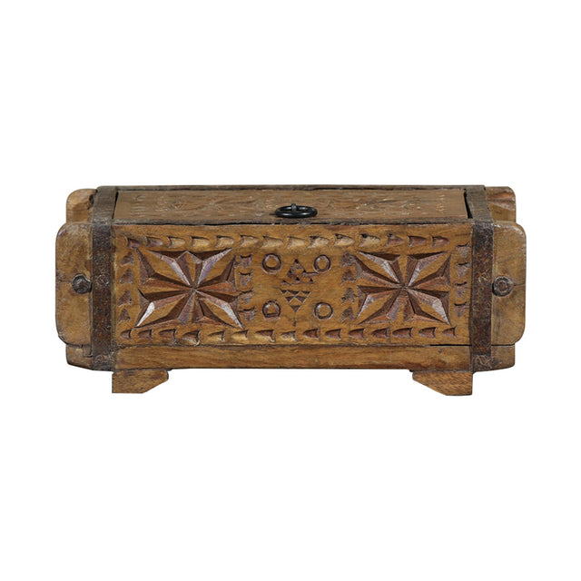 This 12" long hand-carved wooden trinket box is a unique and beautiful piece of Indian artistic craftsmanship that can be used as a keepsake or jewelry box. This box is made from high-quality wood and features intricate carvings that are sure to impress.