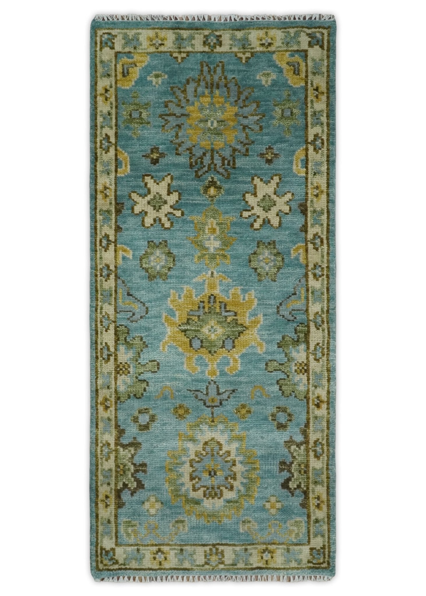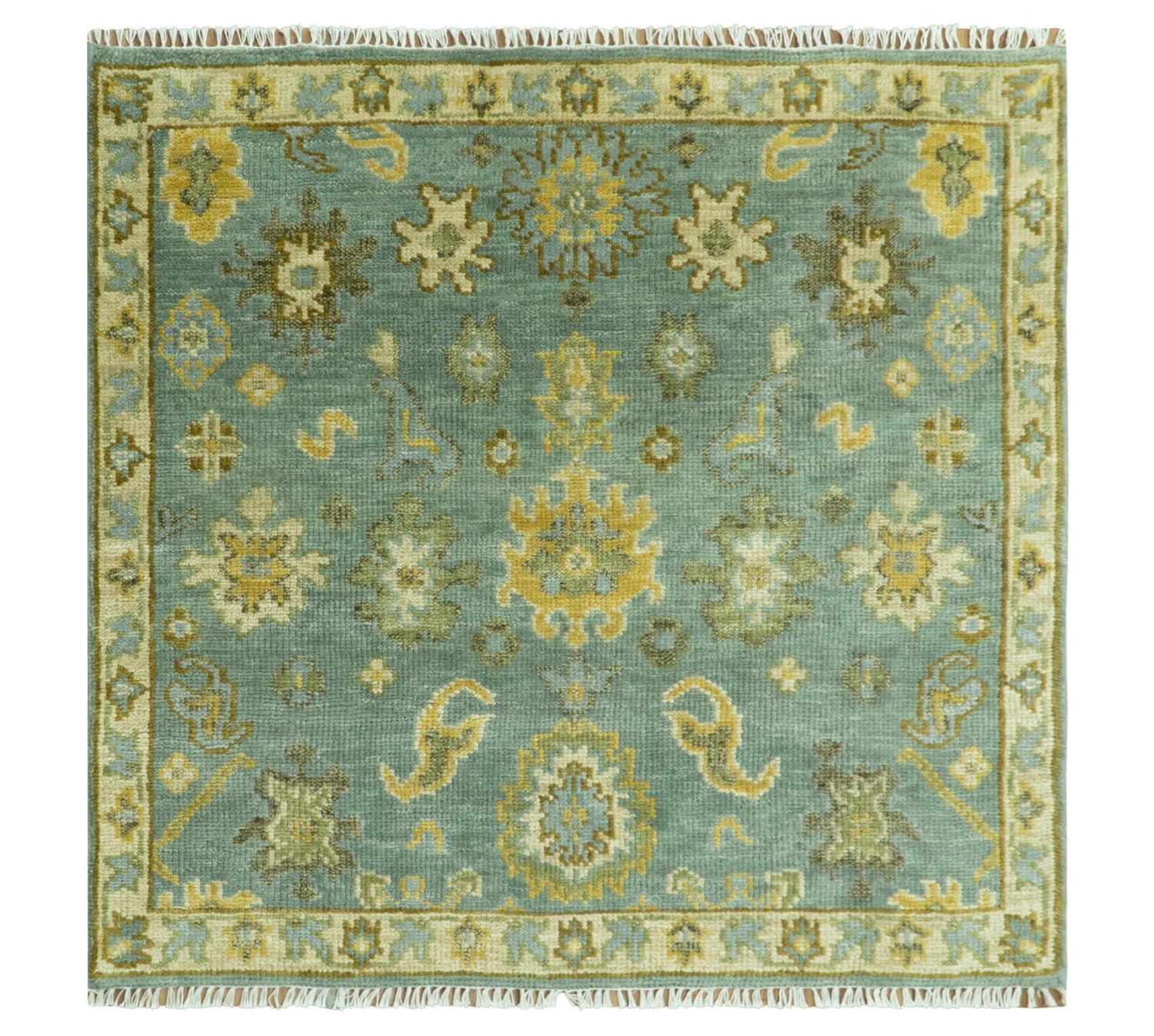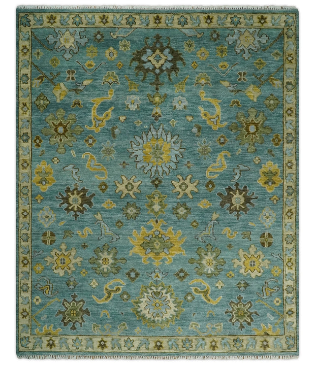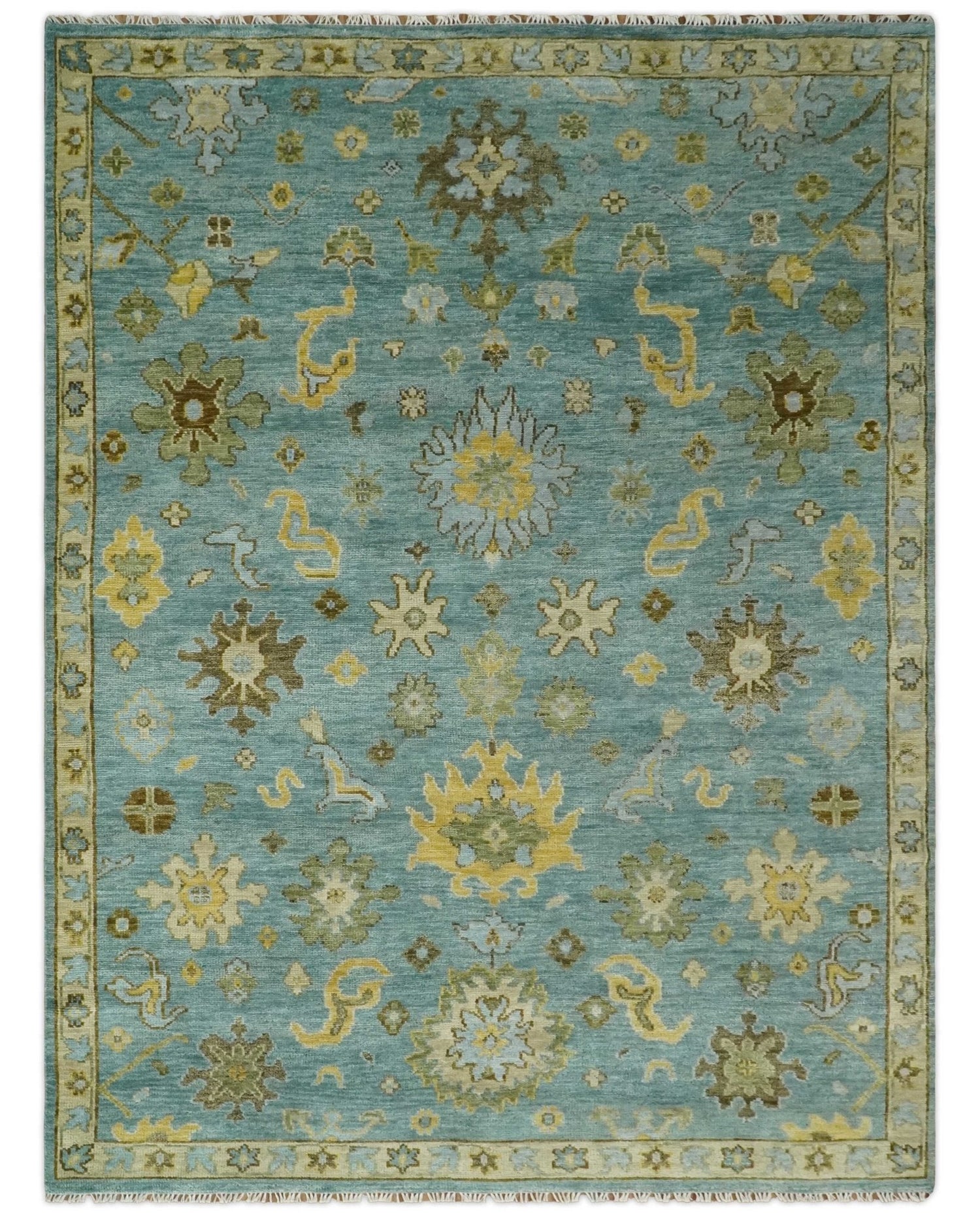 Antique Moss Green and Blue Wool Hand Knotted Traditional Oriental Oushak Multi size Wool Area Rug