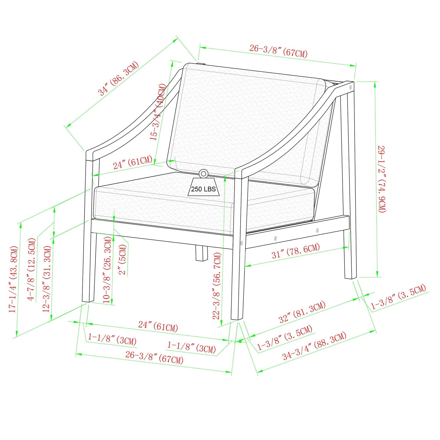 - Weight capacity: 250 lbs.