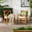 Bring an inviting nature into your backyard with our outdoor acacia wood chairs. Made of gorgeous solid acacia hardwood, this set will make a wonderful addition to your patio or deck for those summer nights spent socializing with friends or family. Each chair features a flattering x-back design for a stylish touch to an outdoor area. Included are two deep-seated chairs with plush, soft seat cushions.