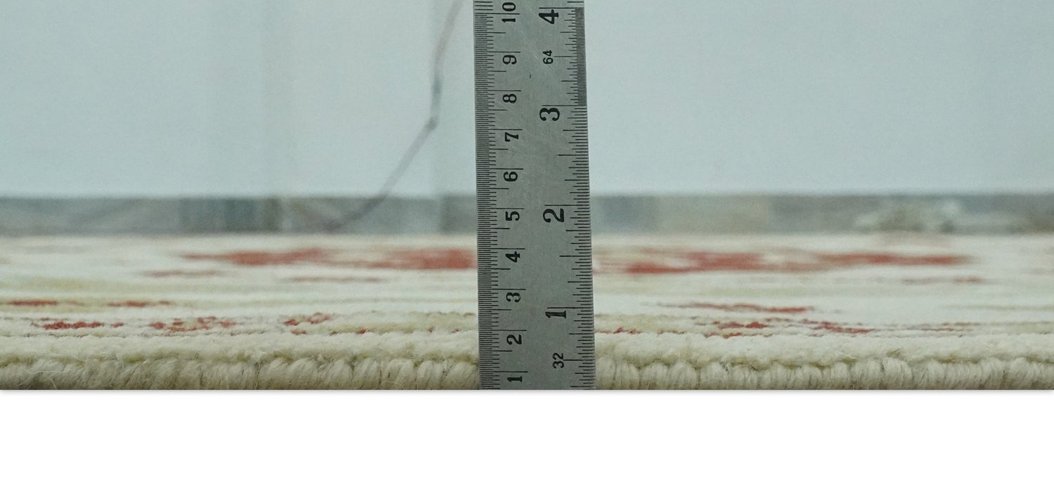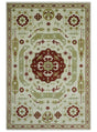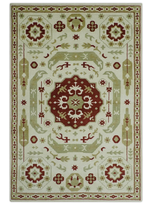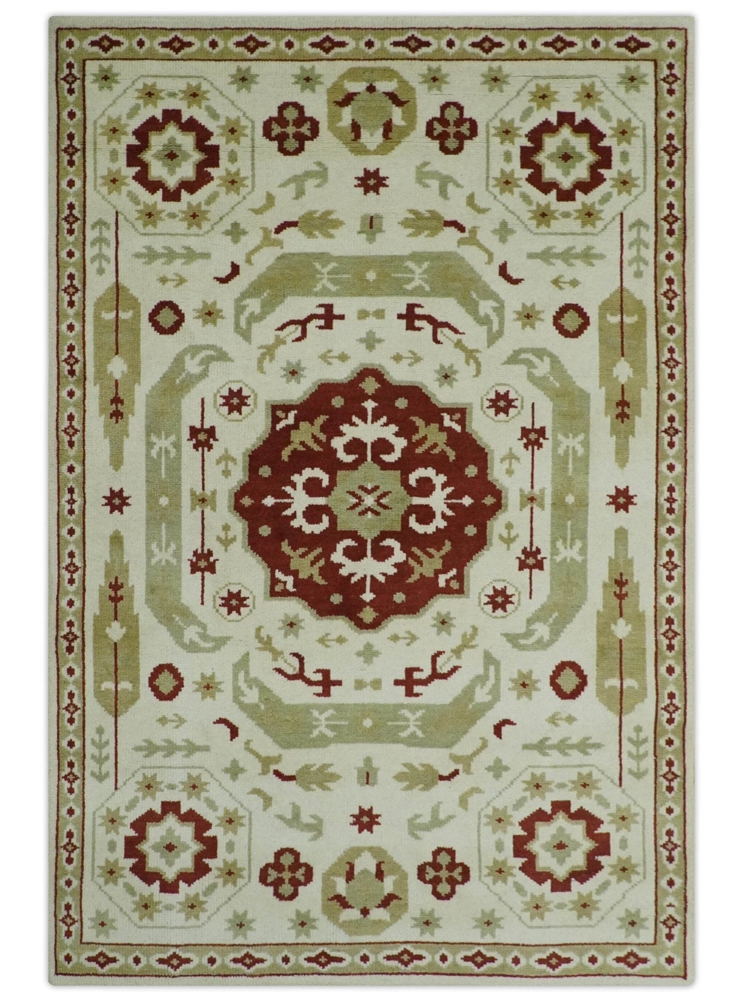 Custom Made Ivory, Olive and Maroon Traditional Medallion Mamluk Design wool Rug