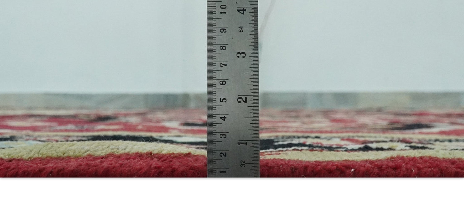 Custom Made Traditional Heriz Maroon, Olive and Black Floral Hand Knotted wool Rug