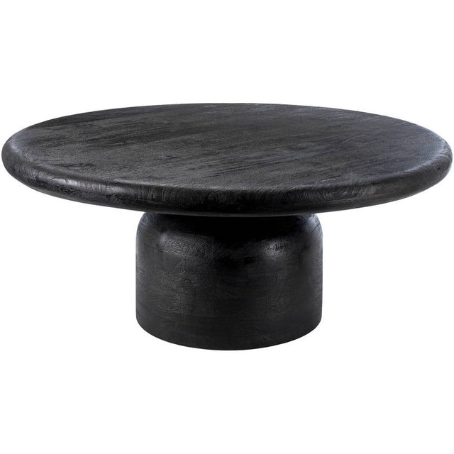 Elevate your living space with the Khaleah Black Coffee Table, a modern masterpiece that captures minimalist design and timeless elegance in one stunning form. Crafted from sandblasted solid Mango wood and made in India, this round coffee table features a sleek, sculptural silhouette that exudes quiet sophistication. Its deep black finish highlights the natural texture and grain of the wood, while the rounded top and substantial turned base ground the piece in bold simplicity. Whether anchoring a contemporary living room or accentuating a cozy lounge corner, the Khaleah Coffee Table offers form, function, and an artistic edge.