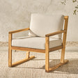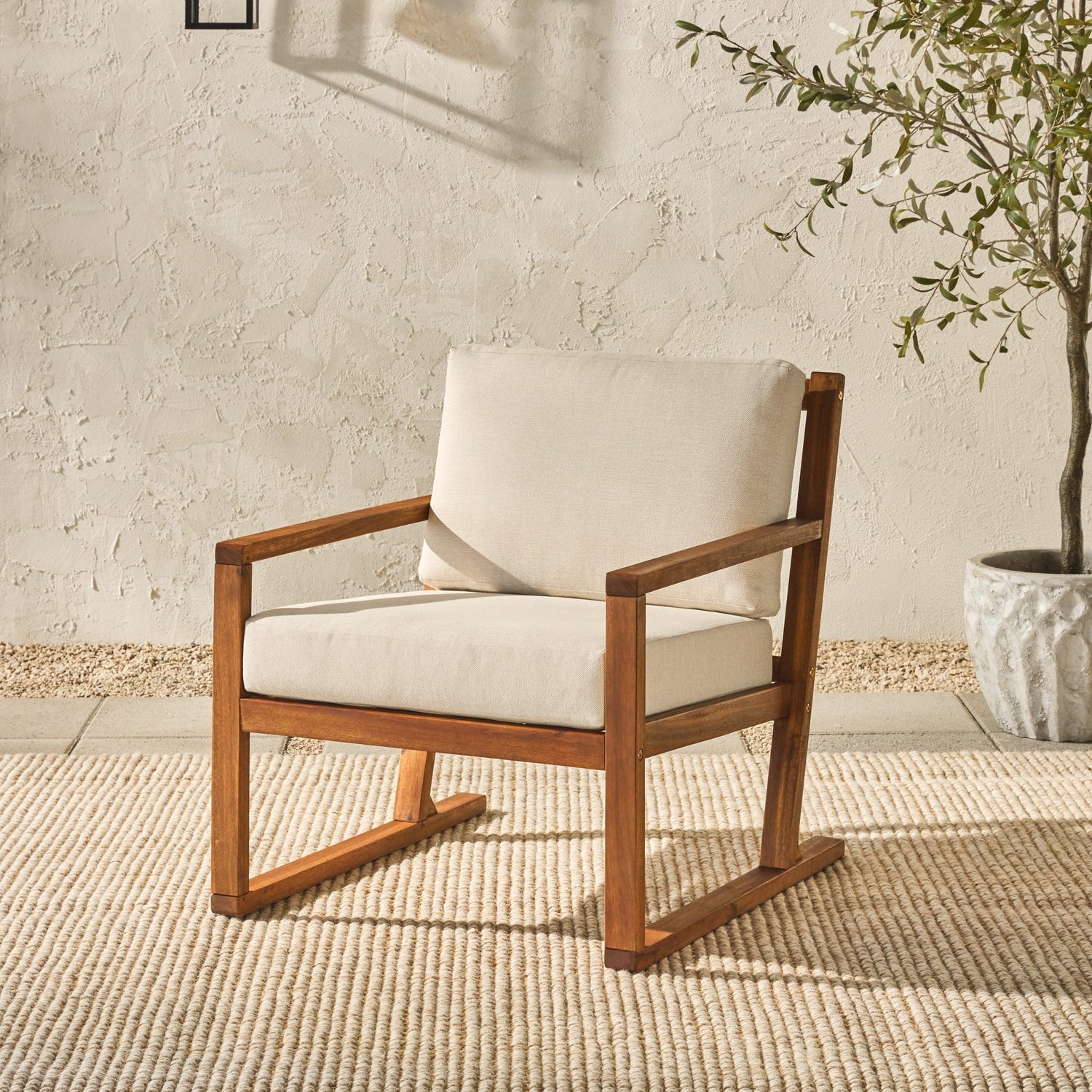 Sleek, simple, and oh-so-stylish, this outdoor accent chair is just what you need to craft a patio paradise. With its upholstered olefin cushions, this chair is the perfect perch to curl up and finish your latest read, or sit and sip or chat with friends. A slatted back, angled frame, and curved edges cater to the luxe look and feel that’ll make your backyard or patio your favorite place to be. Whether it’s displayed inside or out, this accent chair will effortlessly upgrade your space.