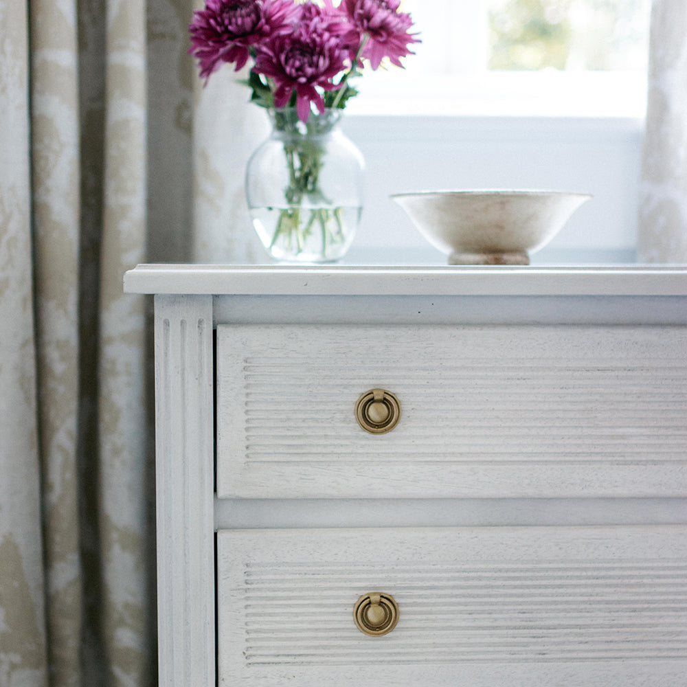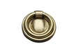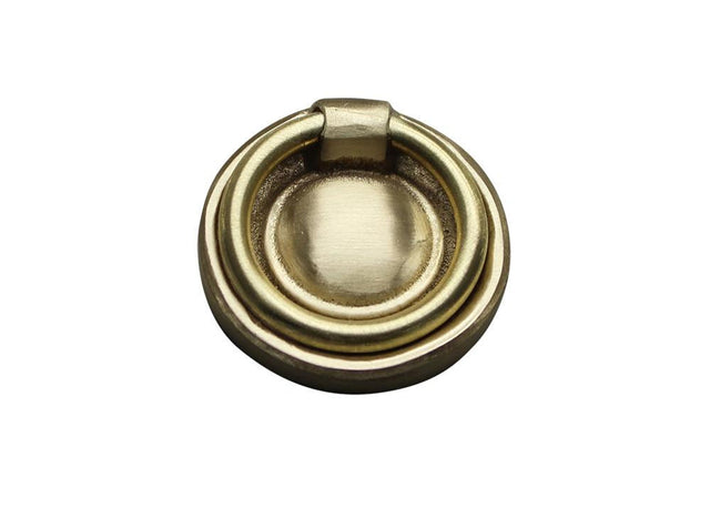 A refined solid brass ring pull with a smooth backplate, offering a simplified yet classic look. Ideal for traditional furniture and cabinetry upgrades with understated elegance.