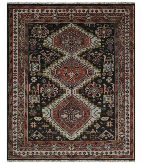 Hand Knotted Rust, Ivory and Black Traditional Antique Multi Size Wool Area Rug