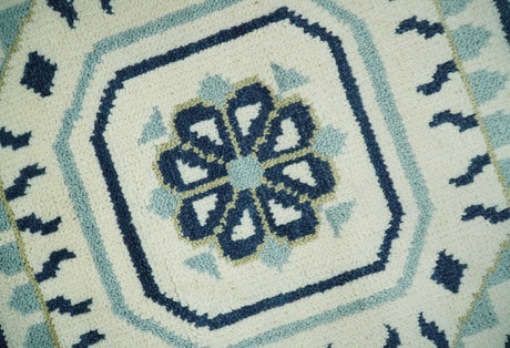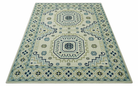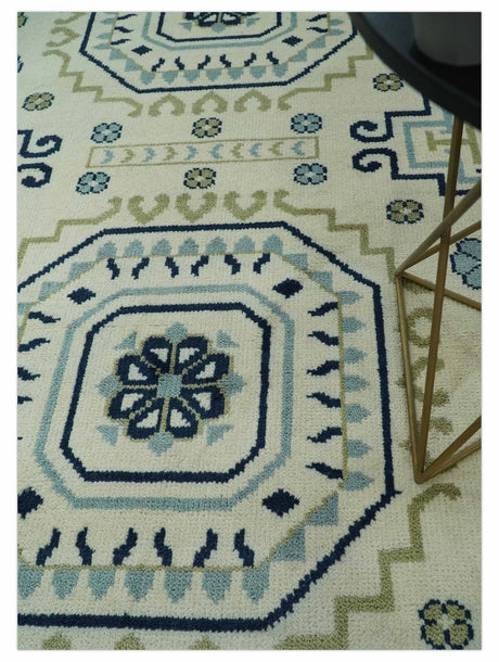 Ivory, Blue and Olive Traditional Mamluk design Custom Made wool area Rug