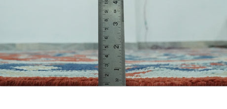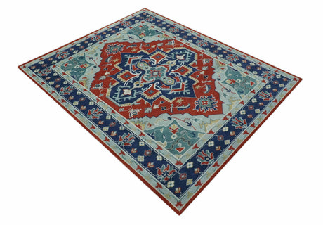 Custom Made Rust, Blue and Silver hand knotted Traditional Heriz wool area rug