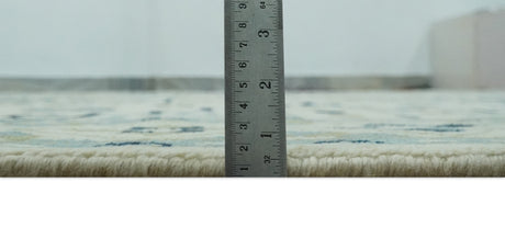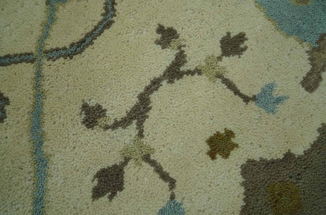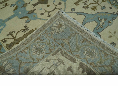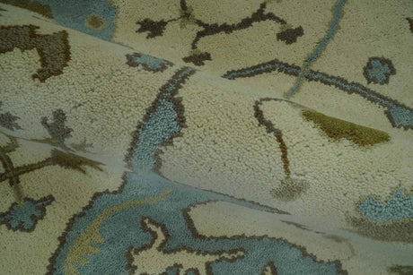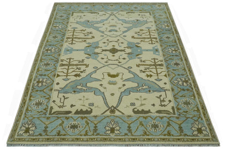 Beige and Aqua Hand Knotted 6x9 Traditional Oriental Oushak wool area rug