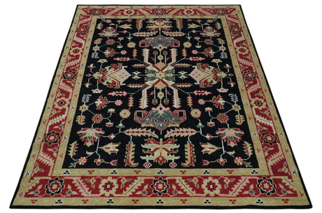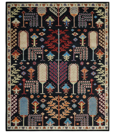 Custom Made Black, Rust, and Olive Traditional Oriental Hand Knotted Wool Area Rug
