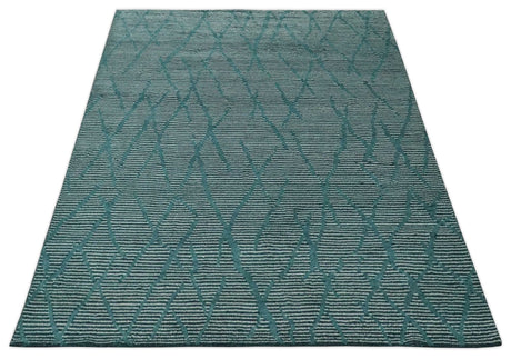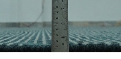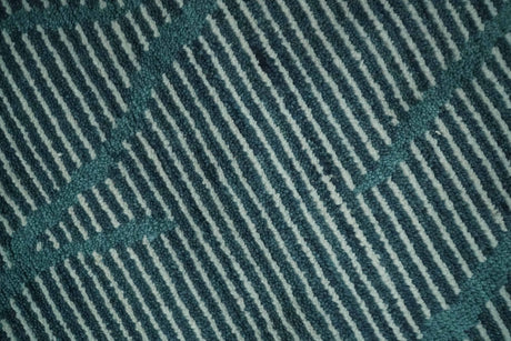 Custom Made Teal and Ivory Modern Stripes Design Hand Knotted wool Area Rug