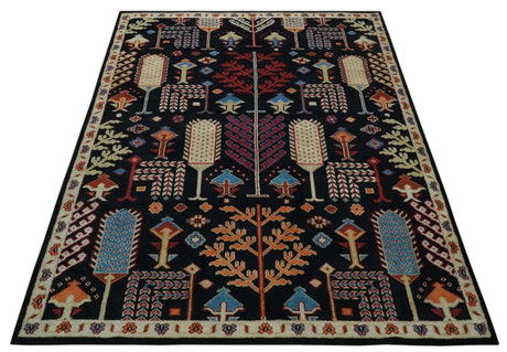 Tree of life Traditional Floral Blue, Ivory and Brown Hand Knotted Custom Made Wool Area Rug