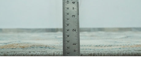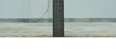 Custom Made Modern Geometrical Silver, Ivory and Charcoal Hand Knotted Wool area Rug