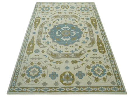 Antique style Gray, Ivory and Olive Hand knotted Traditional Oushak wool Area Rug
