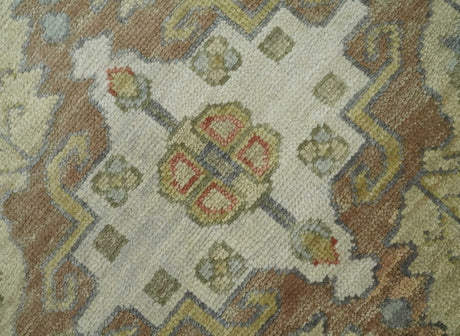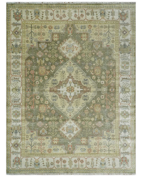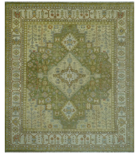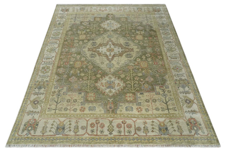 Custom Made Green, Gray and Peach Colorful Hand knotted Traditional Oushak wool Area Rug