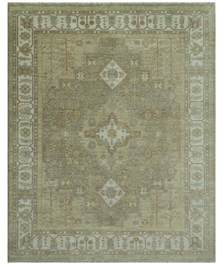 Antique Style Green, Ivory and Beige Hand knotted Heriz Serapi Multi Size wool Area Rug