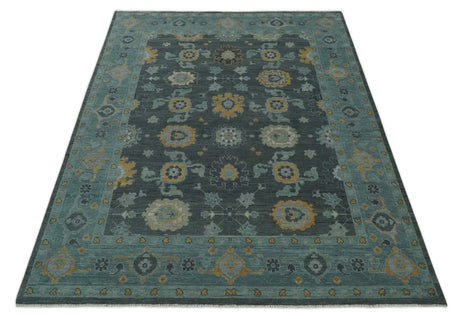 Hand Knotted Charcoal and Aqua Traditional Multi Size Oushak Wool Area Rug