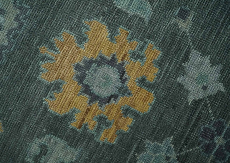 Custom Made Aqua and Green Hand knotted Traditional Oushak wool area Rug