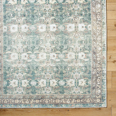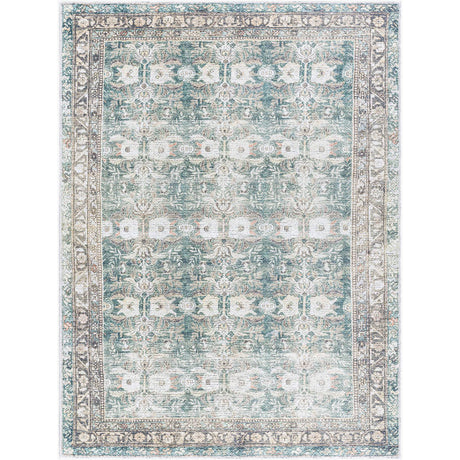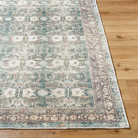 Marqus Traditional Emerald/Light Silver Washable Area Rug