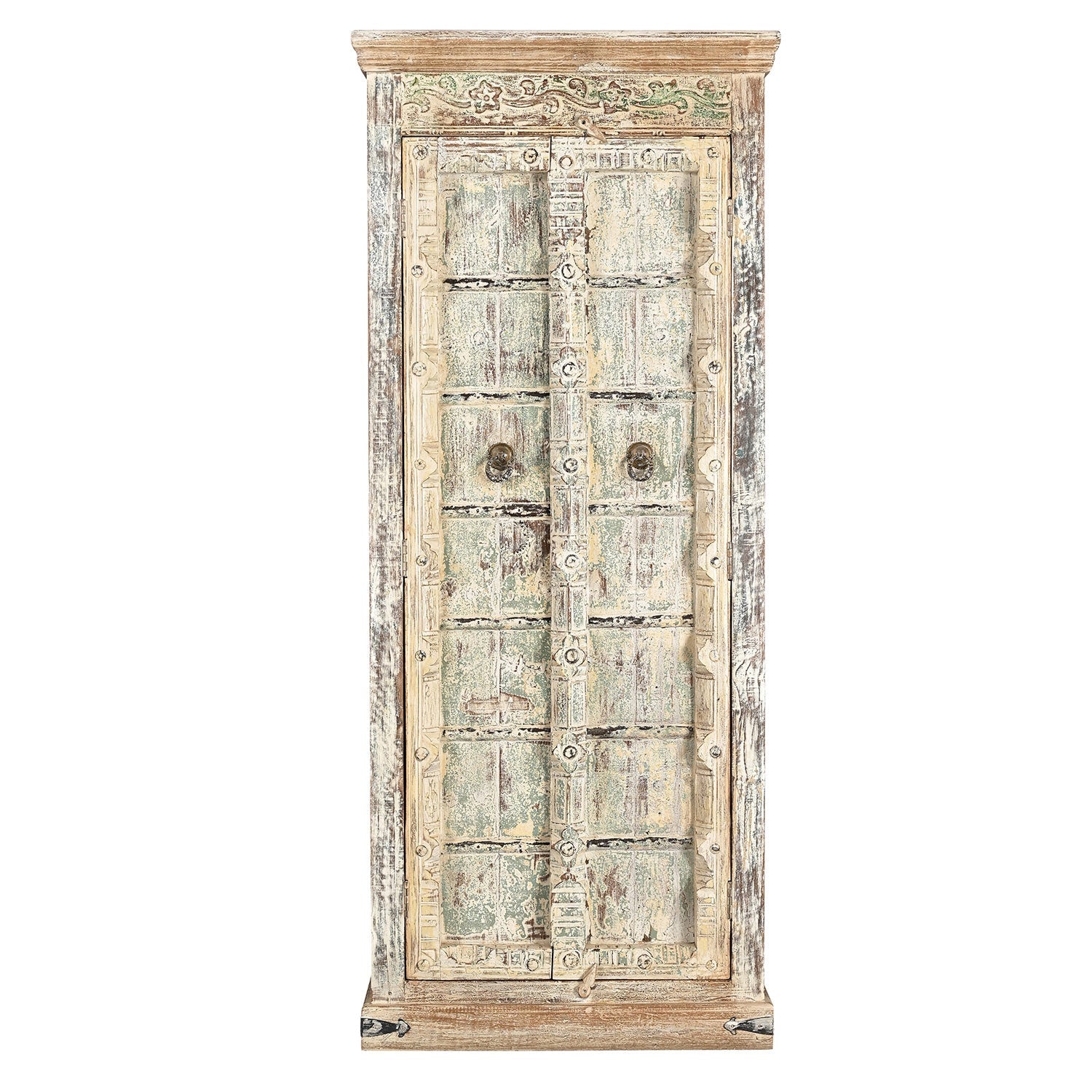 82 in. Tall Distressed White Antique Door Upcycled Solid Wood Armoire