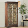 Distressed Blue Teak Wood Antique Door Repurposed 67 in. Tall Bedroom Armoire