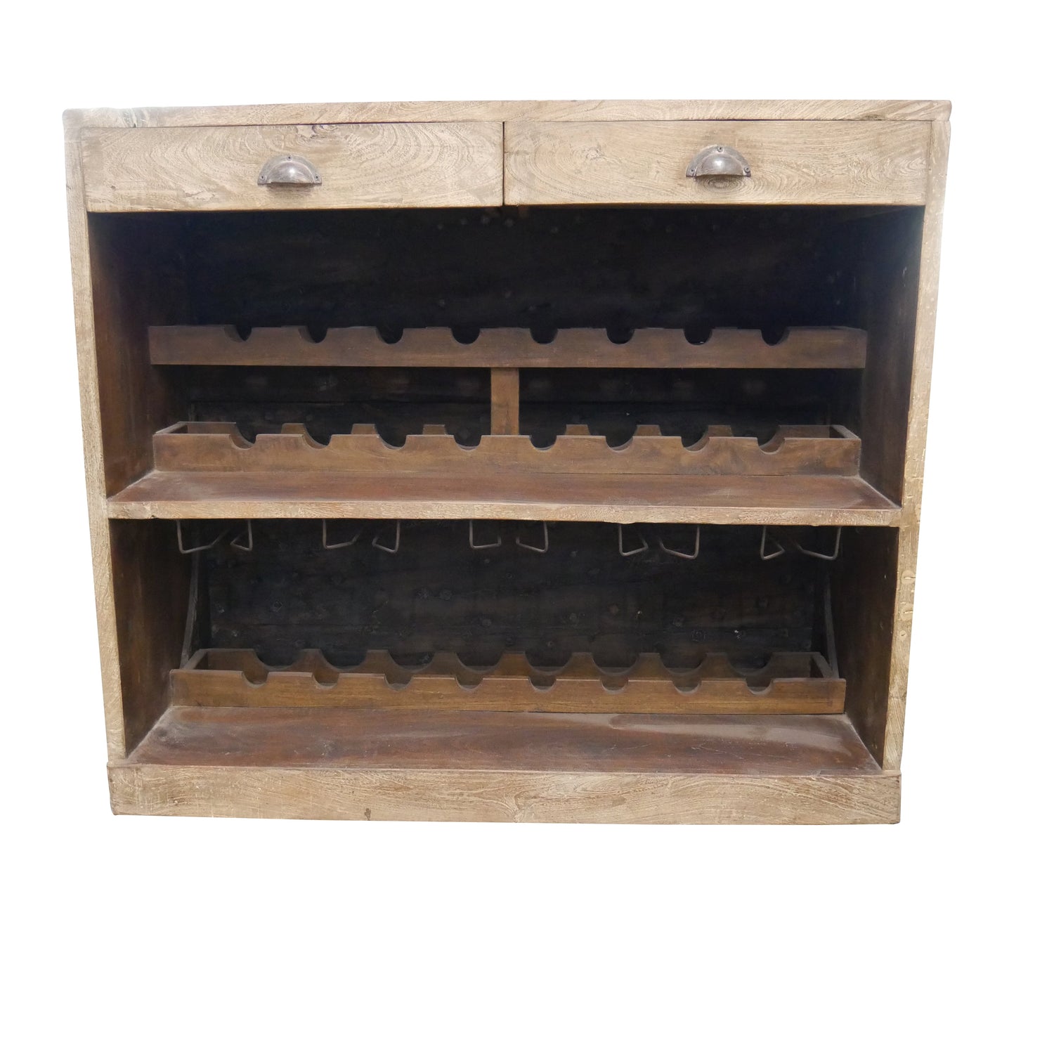 Salvaged bed of an Ox Cart has been thoughtfully designed and repurposed into this very unique Bar. The aged wood and the metal starp work of the original bed makes this a perfect addition to a country or ranch style home.