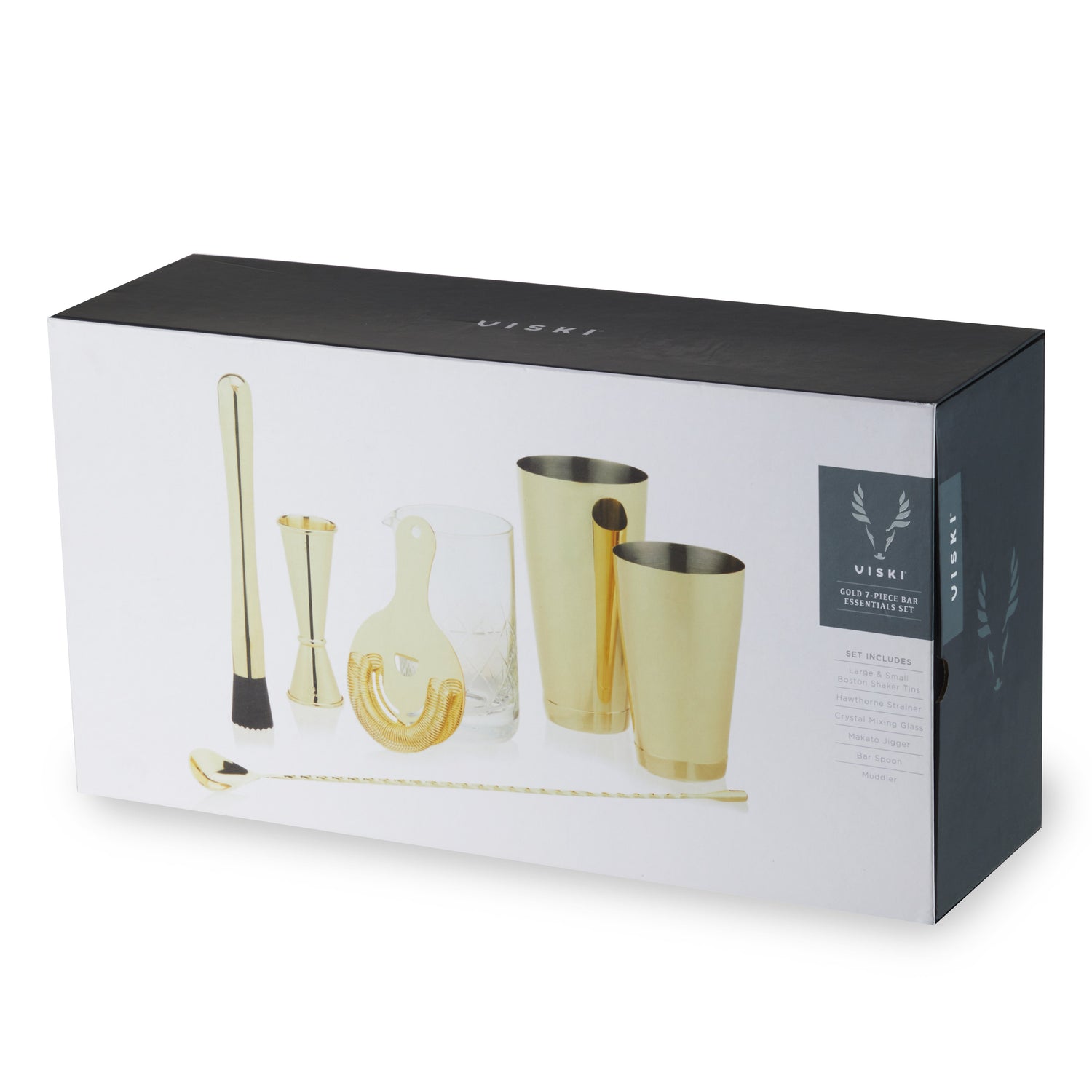 - Includes: 1 27 oz. Mixing Glass, 1 28 oz. Shaker Tin, 1 18 oz. Shaker Tin, 1 Hawthorne Strainer, 1 Double-Sided Jigger with 1.5, 0.75 and 0.5 oz. measurements, 1 Weighted Bar Spoon, 1 Muddler