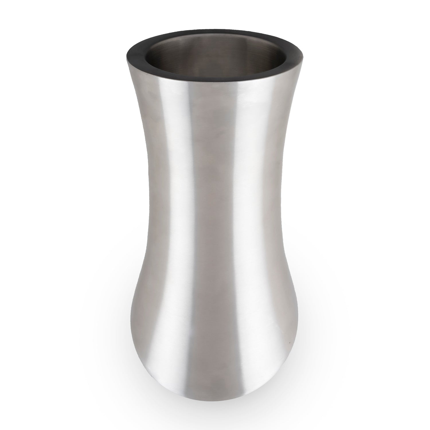 Angled and contoured to showcase wine with museum-worthy panache, our gleaming stainless steel bottle chiller is double-walled for full insulation and holds one standard bottle of white wine or bubbly until you're ready to pop the cork.