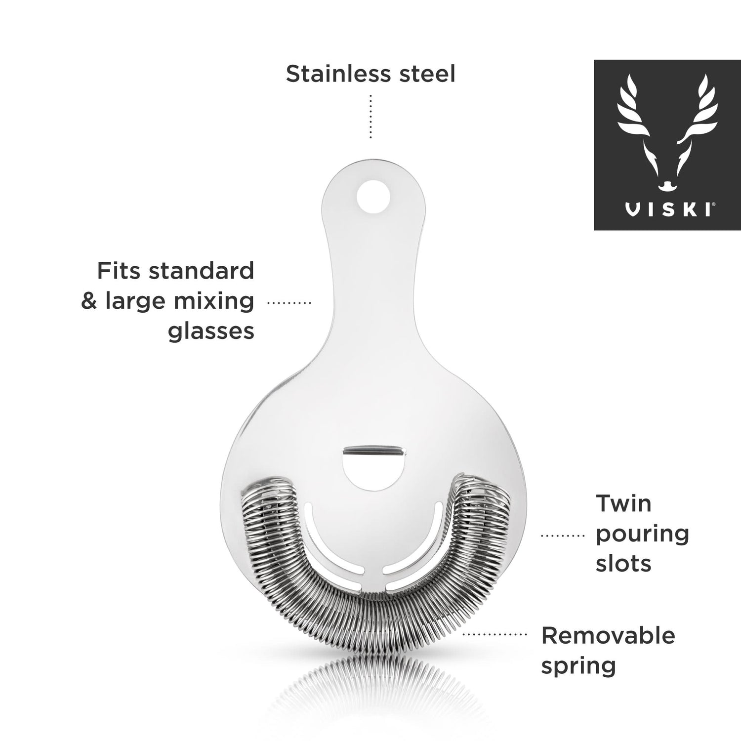 An unobtrusive flat handle, broad face and tightly coiled spring define our professional-grade Hawthorne strainer, while two symmetrical sets of perforations provide the bonus of making split pours second nature.