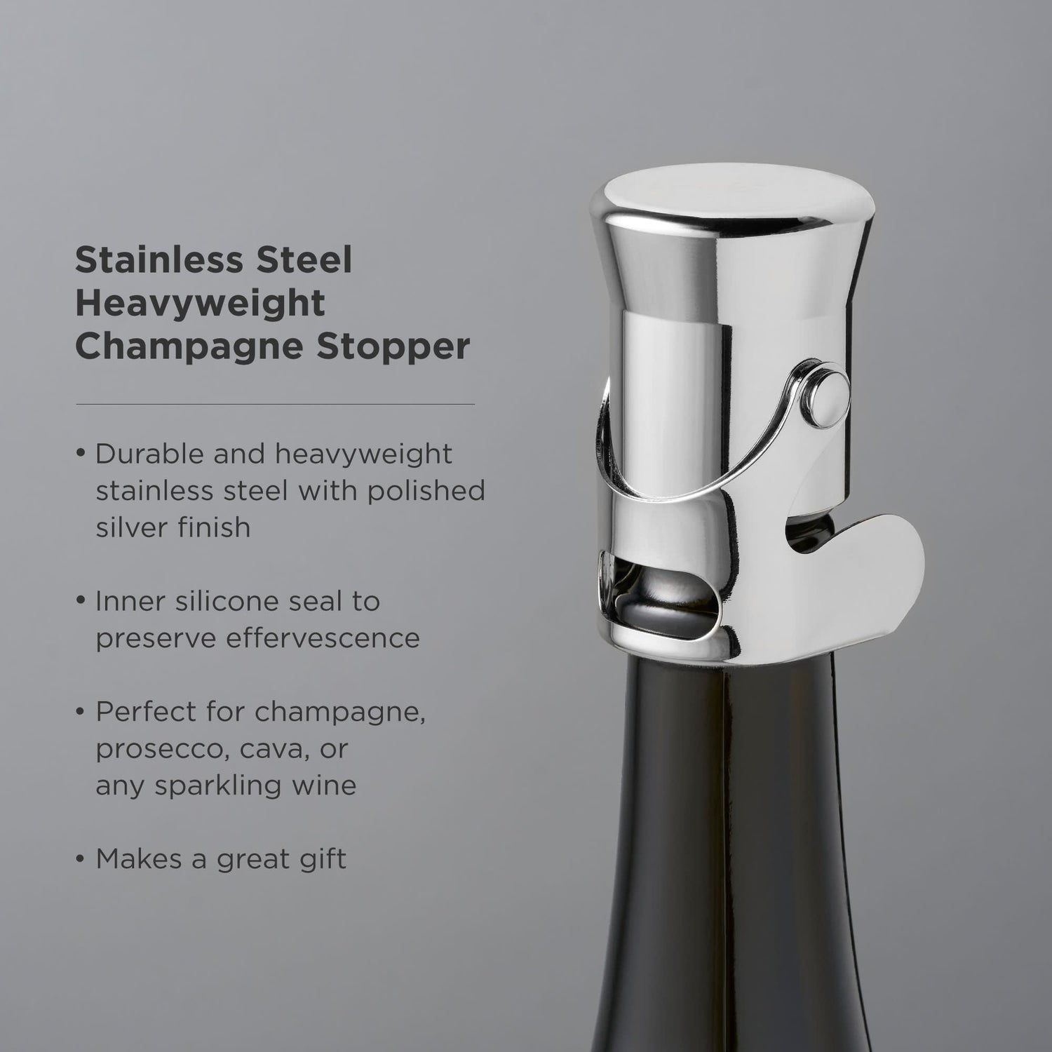 There's no reason to rush a good celebration. As such, lock bubbles into your champagne, prosecco and cava with a weighted professional-grade steel champagne stopper, which seals the bottle completely to preserve effervescence and keep the good times rolling on.