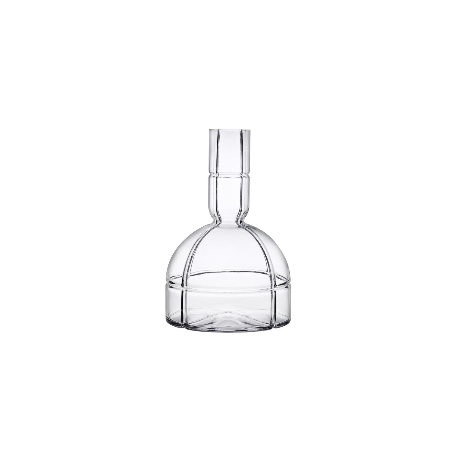 Crafted from lead-free crystal expertly etched with a series of intersecting perpendicular lines, this NUDE O2 wine carafe is simple yet aesthetically pleasing. The gently bulbous body rests atop a wide-bottomed base — softly domed, allowing the light to illuminate the piece from underneath — and crowned with an elegantly slender neck.
