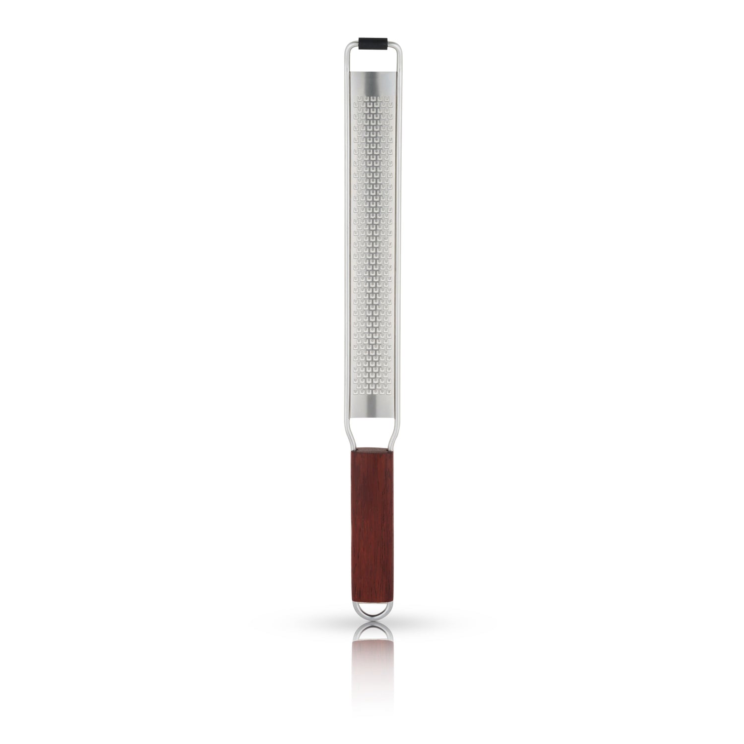 Finish handcrafted cocktails with a professional twist of citrus. Polished acacia with a smooth exposed grain provides ergonomic support while a generous expanse of stainless steel delivers a durable grating surface on which to shave segments of rind into delicate garnishes. Most suitable for oranges, lemons and limes.