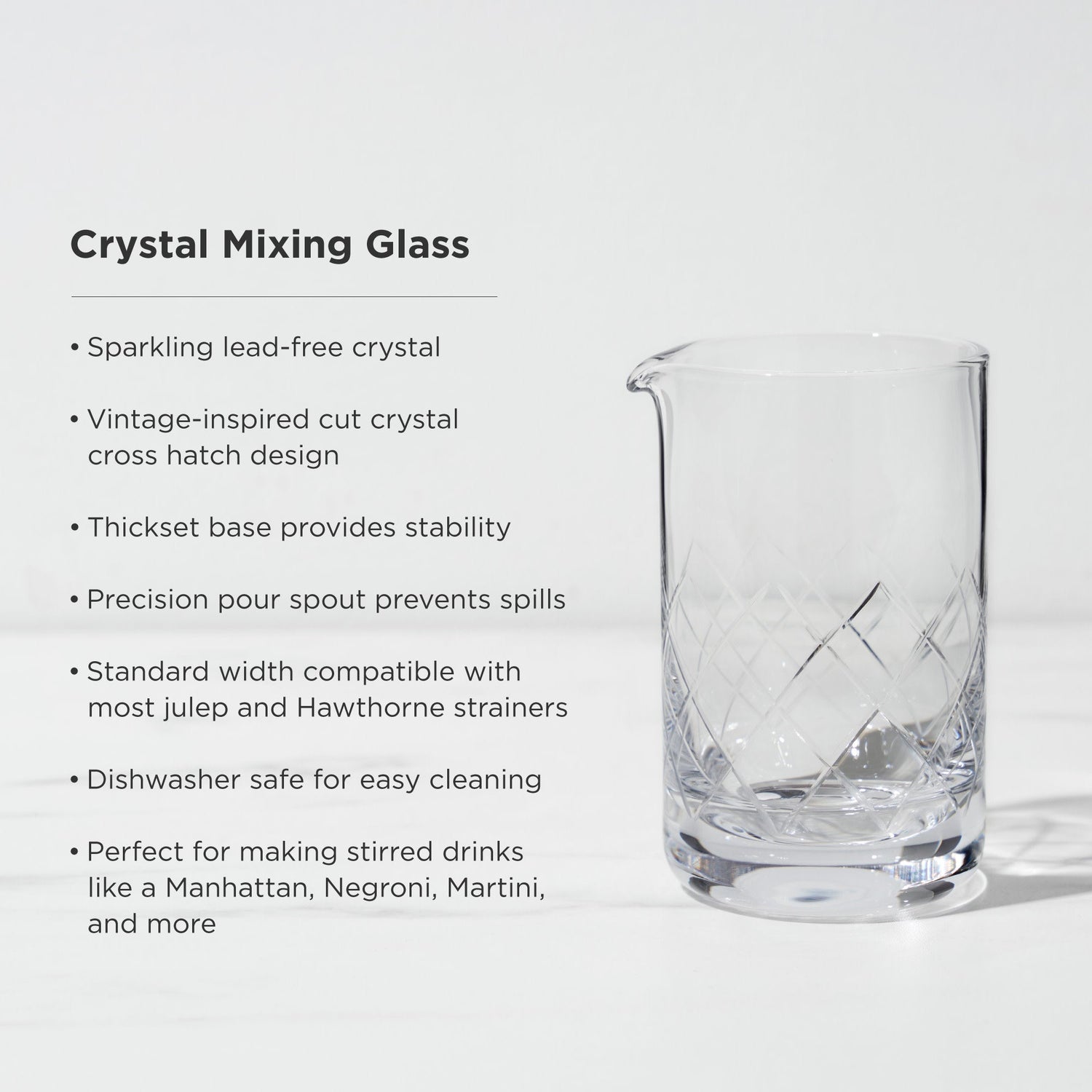 Designed and sized for expert bartending, the 500mL professional-grade mixing glass accommodates one or two drinks and works smoothly in allegiance with our professional bar spoons and strainers. Features a thickset base, precision pour spout, and strong geometrically faceted sides.