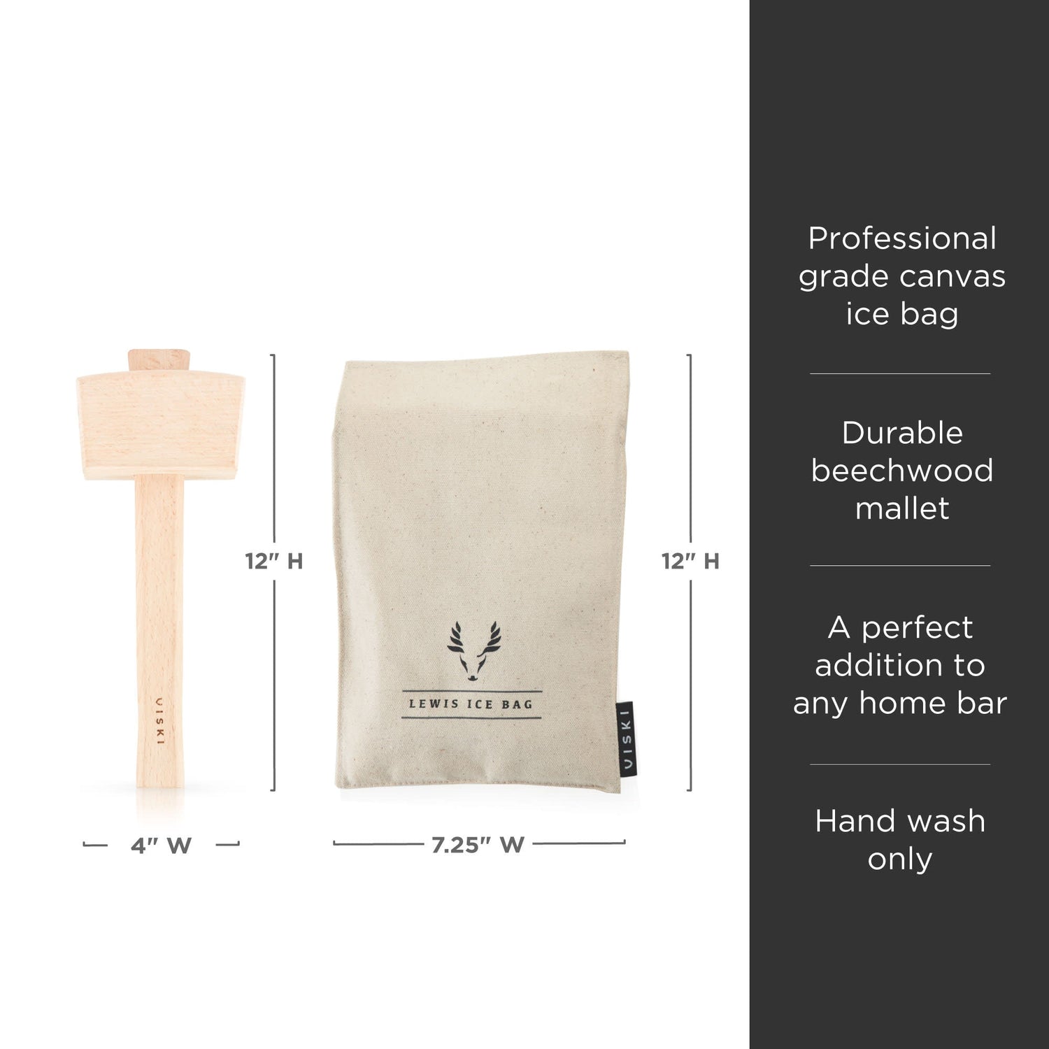Crush your own ice for juleps, swizzles and smashes in this professional-grade canvas ice bag, based on the original Lewis design and accompanied by a heavy hardwood mallet. The canvas material absorbs excess water, creating a dryer crushed ice for more flavorful cocktails.