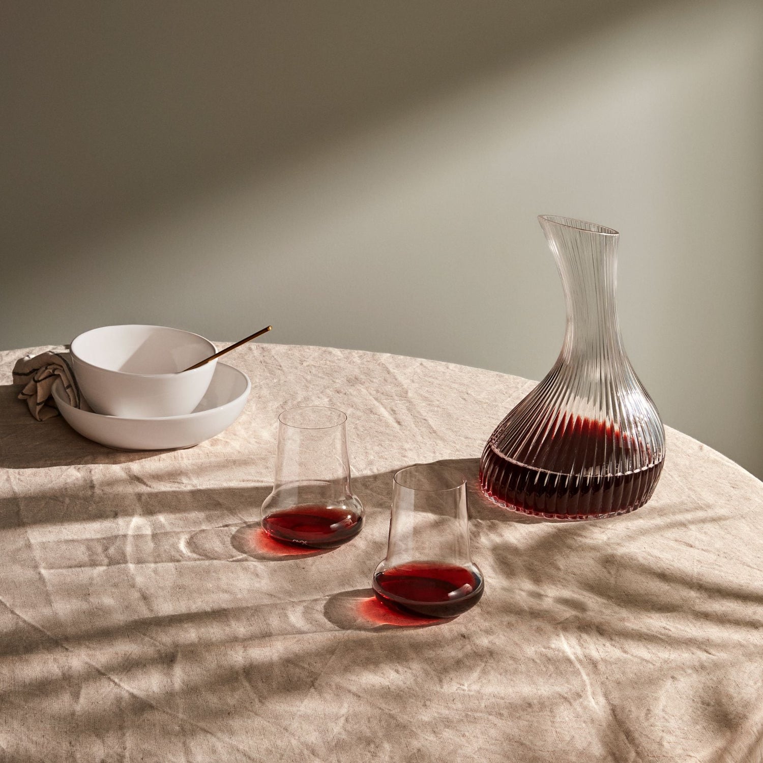 A charming addition to any table setting, this NUDE Vini carafe enchants with its sculptural, curvaceous silhouette and a mesmerising linear pattern. Carefully handmade from our finest lead-free crystal, it is designed to harmonise seamlessly with other pieces from the NUDE catalogue.