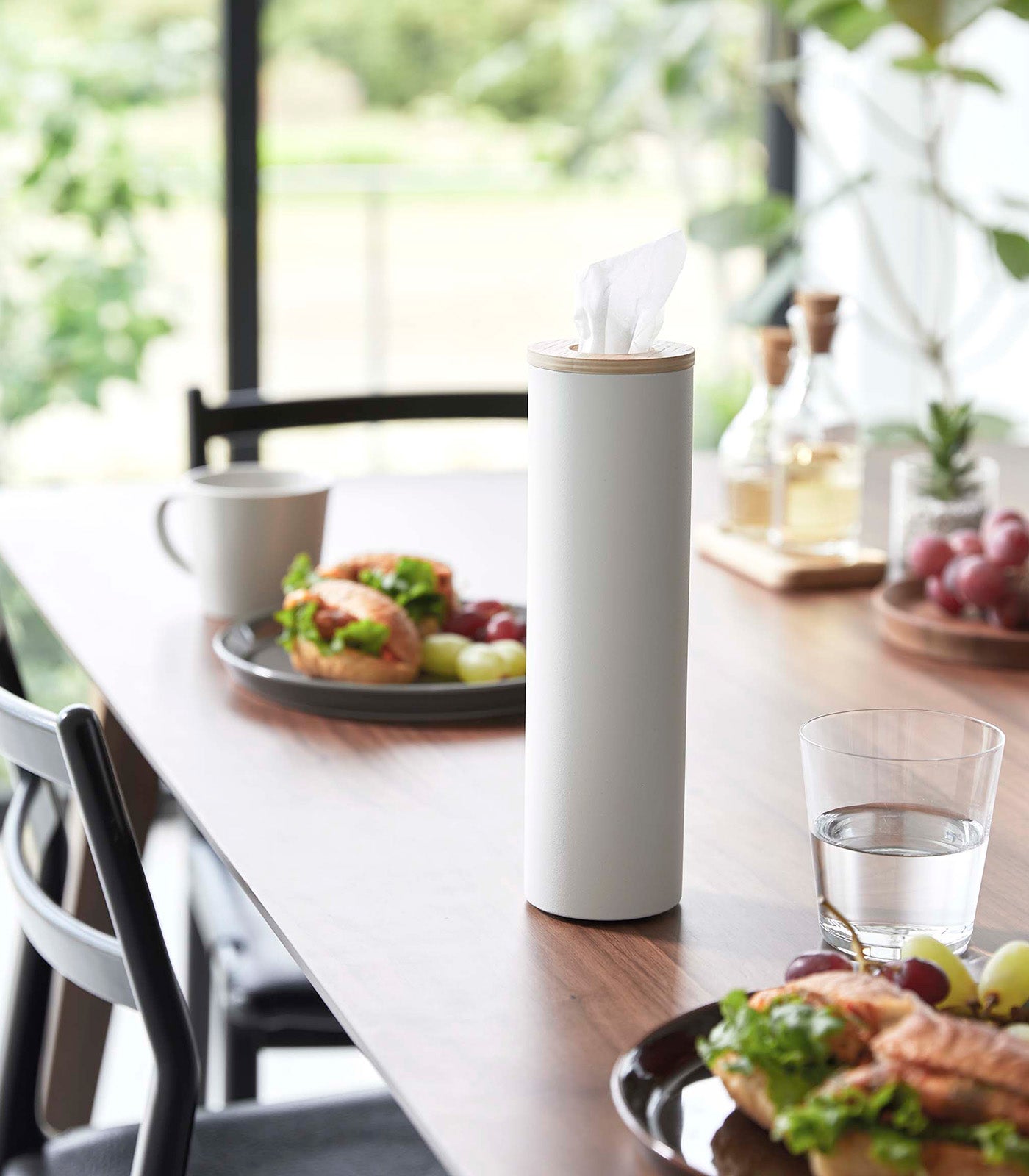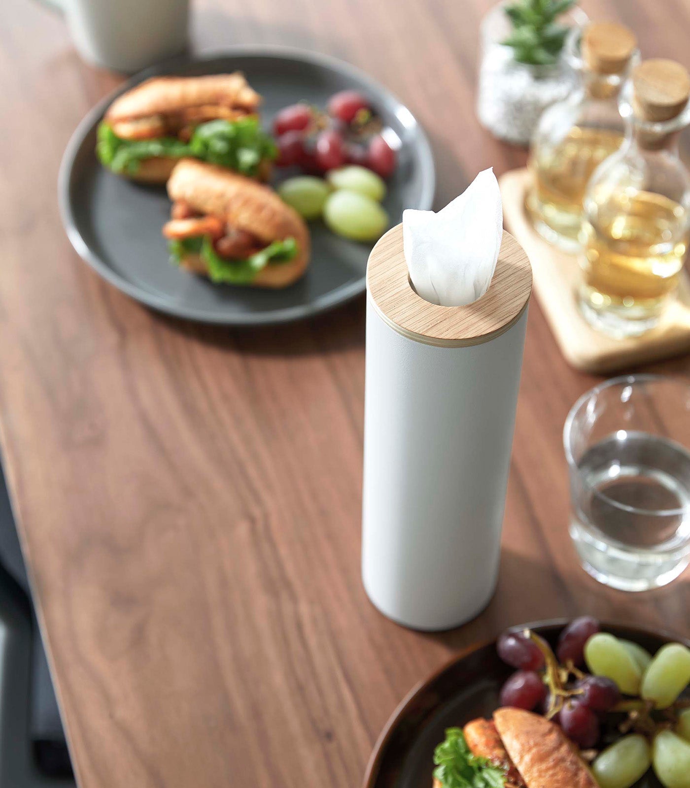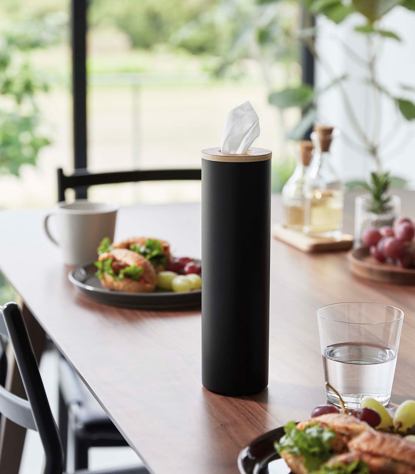 Transform everyday tissues into a luxurious decor item with these slender and modern tissue cases. The sturdy cylindrical steel body allows for extra stability while the silicone seal lining the wooden top keeps the lid in place so tissues can easily be dispensed. All you have to do is roll your tissues into a cylinder and insert them in from the top. Pull the innermost tissue up through the opening, and you’re all set! Keep one on your coffee table, by the sink, on your bedside table—or if you choose the small version, even insert one in your car’s cup holder for a classy touch.