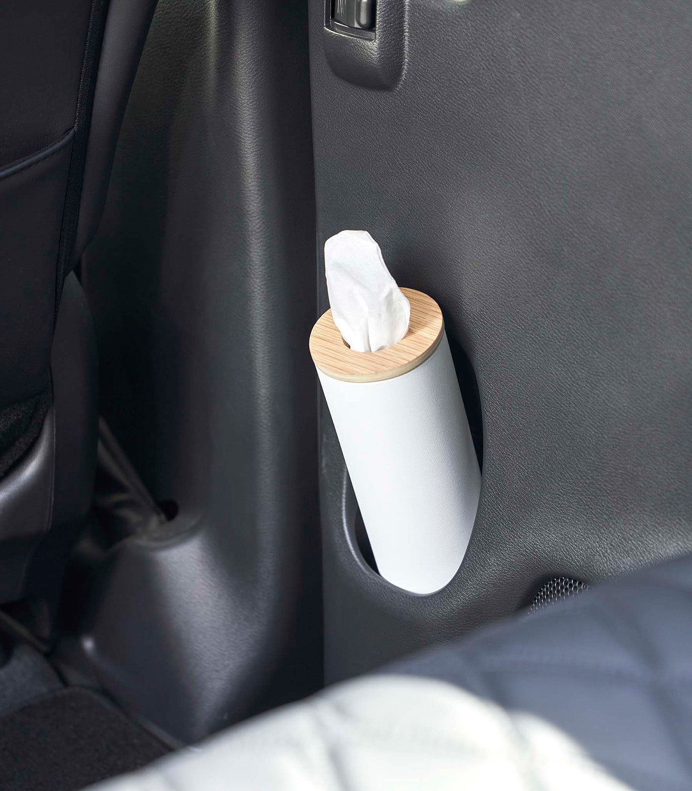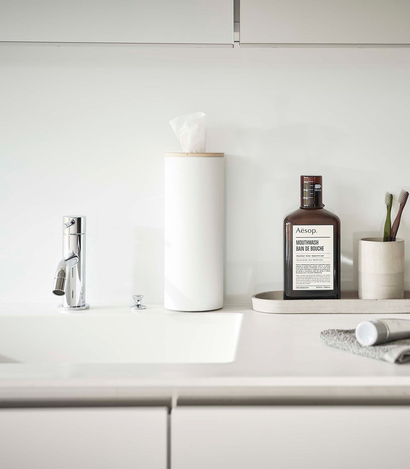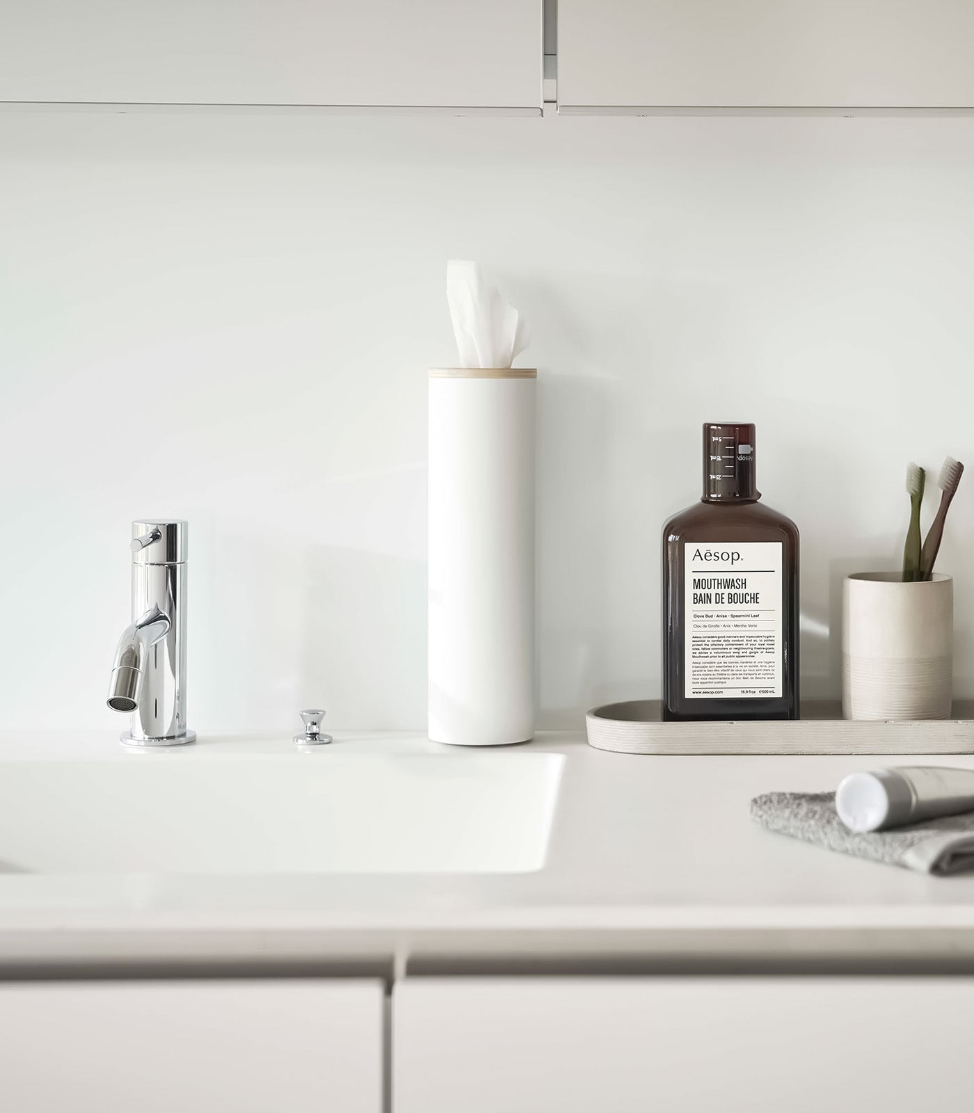 Transform everyday tissues into a luxurious decor item with these slender and modern tissue cases. The sturdy cylindrical steel body allows for extra stability while the silicone seal lining the wooden top keeps the lid in place so tissues can easily be dispensed. All you have to do is roll your tissues into a cylinder and insert them in from the top. Pull the innermost tissue up through the opening, and you’re all set! Keep one on your coffee table, by the sink, on your bedside table—or if you choose the small version, even insert one in your car’s cup holder for a classy touch.
