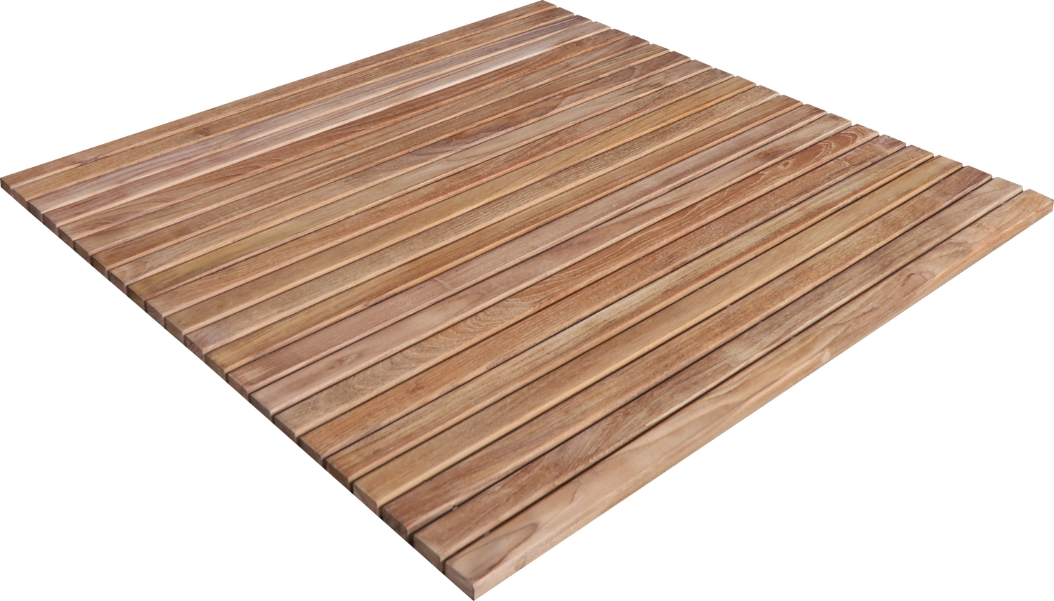 Treat your bathroom, patio, RV or just about anywhere you’d like with an upscale look with this smooth teak wood string mat. Twenty two 30 inch teak wood slats are held together by aluminum strings for easy rolling and portability. The premium finish of this eco-friendly mat ensures lasting functionality for indoor and outdoor settings alike.