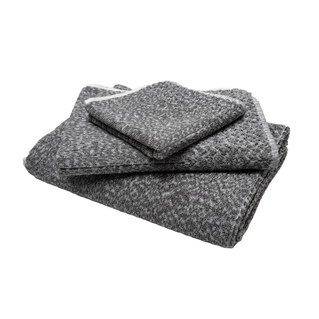 Three piece set includes: Bath Towel, Hand Towel, Guest Towel