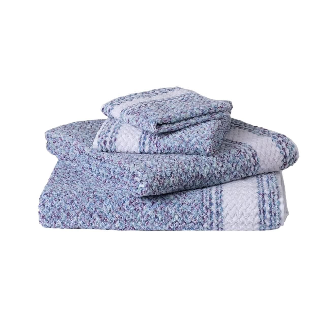 The Bath Towel measures a generous 30"x60", ideal for swathing you in post-bath serenity. Our 20"x35" Hand Towel adds a splash of vibrant blue to your daily routine. Impress your guests with the tasteful 16"x16" Guest Towel, a small but exquisite touch of luxury.