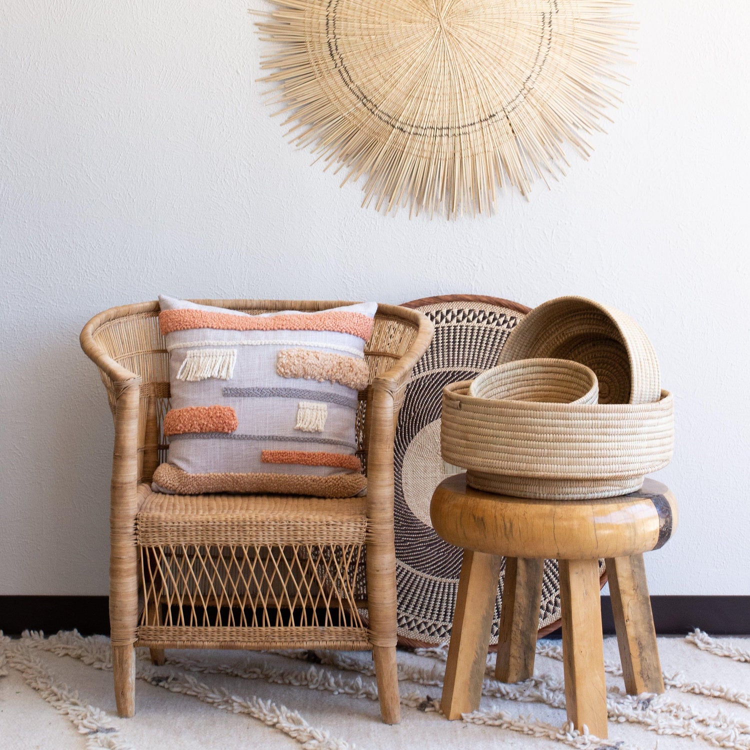 Create using the traditional coiling weaving technique, these trays are sturdy enough to last for years. A fantastic catch-all, center piece, or accent piece that is stylish enough to keep on display. Organic in nature and material, the Dengu Basket is a beautiful way to add a touch of warmth to any space.