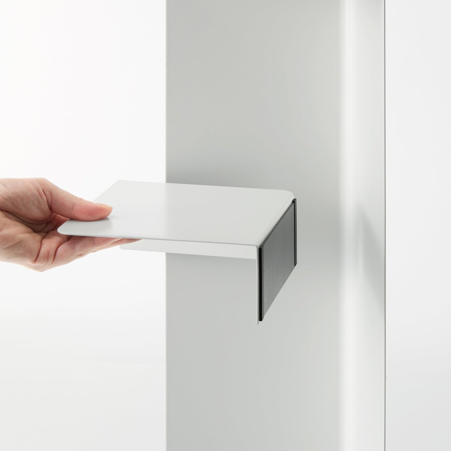 Meet your one stop-shop for bathroom essentials Stock up on bathroom supplies with this stylish, hidden rolling storage system that fits in even the smallest of bathrooms. Store toilet paper and other bathroom essentials on the interior shelves and make it your own with the adjustable magnetic interior rack. Rotate the cart for easy access to your essentials or conceal it for privacy. Freshen up your space by placing a plant, candle, or incense on the top shelf.