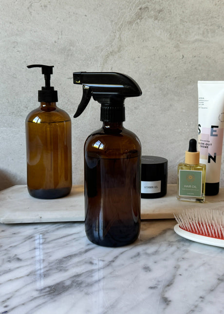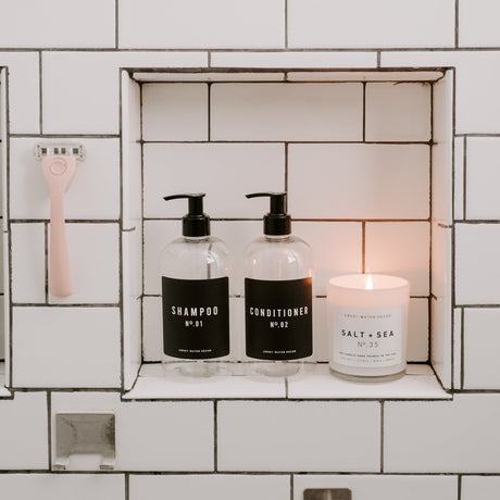 16oz Clear Plastic Bath + Shower Dispenser Set of 2 - Black Label