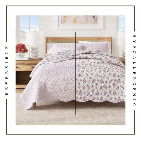 Floral Print & Scallopeded Edge Cotton Quilt Set - Sandie Collection