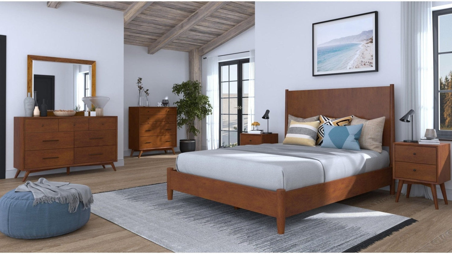 The Flynn collection features the classic lines of Mid-Century Modern furniture that never goes out of style.  Its sturdy frames are built to last, constructed of sustainably sourced solid Mahogany wood to ensure a lifetime of use.  The case pieces provide a roomy storage solution and make it easy to create a cohesive decorating style or mix and match for a more personalized look.  Available in a Chestnut or White finish.  Coordinates with other optional pieces from the Alpine Flynn collection.
