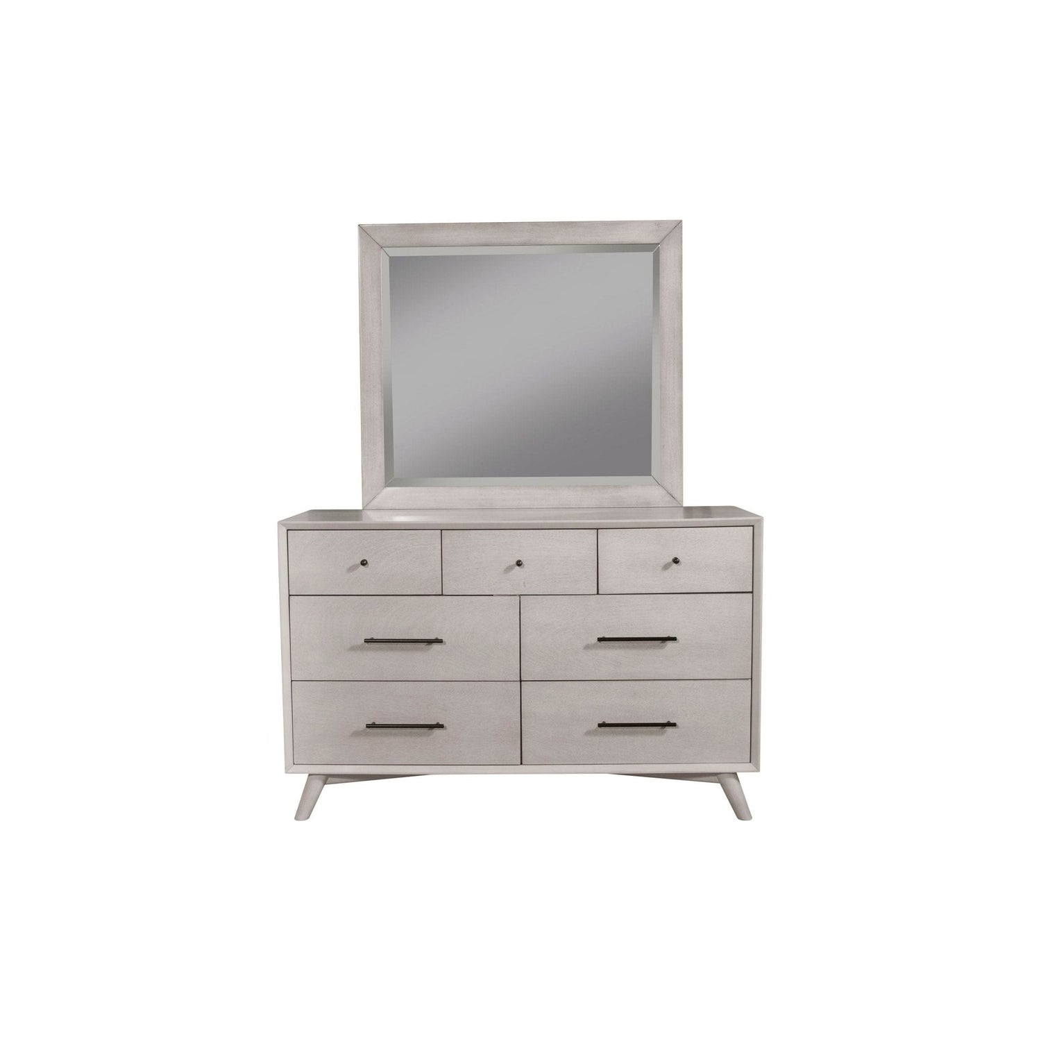 The Flynn collection features the classic lines of Mid-Century Modern furniture that never goes out of style.  Its sturdy frames are built to last, constructed of sustainably sourced solid Mahogany to ensure a lifetime of use.  The Flynn dresser has seven drawers to accommodate most bedroom necessities.   The dresser comes fully assembled, and is constructed with ball bearing metal drawer glides and French & English dovetail drawer construction.   The Flynn bedroom makes it easy to create a cohesive decorating style or mix and match for a more personalized look.  Coordinates with other pieces in multiple finish options as part of the Alpine Furniture Flynn collection sold separately.