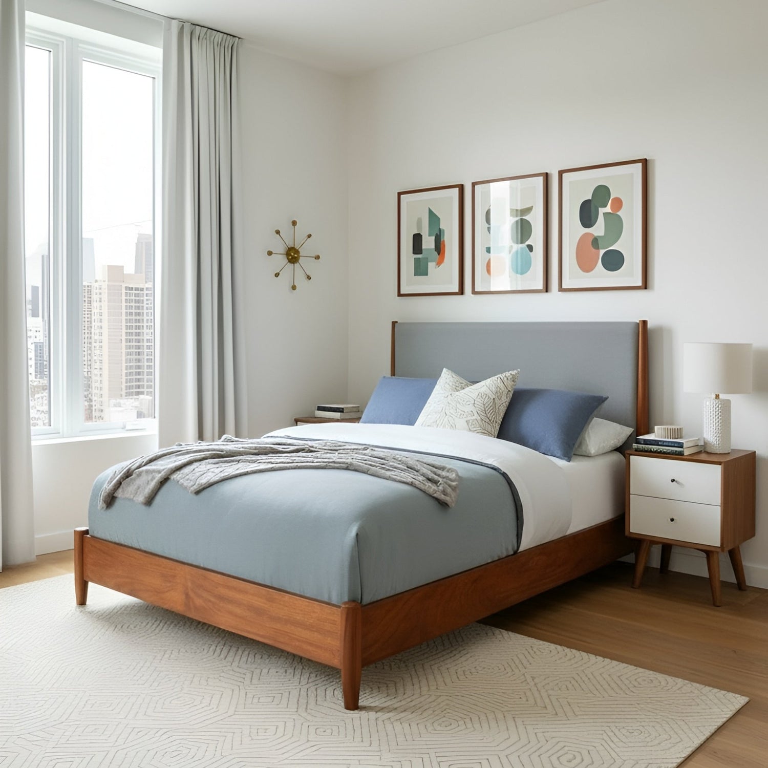 The Flynn collection features the classic lines of Mid-Century Modern furniture that never goes out of style. Its sturdy frames are built to last, constructed of sustainably sourced solid Mahogany to ensure a lifetime of use. The case pieces provide a roomy storage solution and make it easy to create a cohesive decorating style or mix and match for a more personalized look. This group combines the Chestnut and White finishes for a great looking two-tone option.