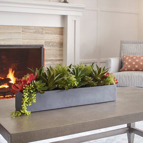 Rectangular Artificial Succulent Arrangement, Gray Planter